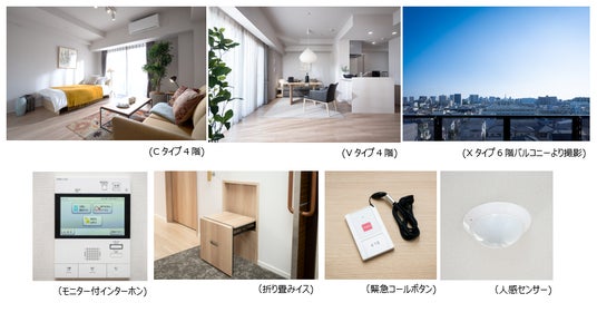 快適なワンルームから、ご夫婦やご兄弟・ご姉妹でのご入居に最適な2LDK まで、幅広い住戸プランをご用意しております。居室内は、ご入居者様が安心・安全・快適にお過ごしいただけるよう、細部まで配慮した設計となっています。床は段差のないフルフラット仕様とし、引き戸や手すりを各所に設置。玄関には靴の着脱時にご利用いただける腰掛けイスを設けるなど、つまずきや転倒防止に努めています。さらに、全戸にモニター付きインターホンを設置し、セキュリティ面にも配慮。人感センサーや緊急コールボタンも備えており、万が一の際にはスタッフが迅速に対応できる体制を整えています。