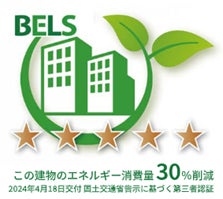 また、本物件は断熱性・省エネ性能に優れた環境配慮型建築物として「BELS※2」最高ランクの5 つ星を取得(2024 年4 月18 日交付)しています。さらに、20kW の太陽光発電設備を導入し、共用部の電力として活用。室内環境の快適性を保ちながら、建物全体のエネルギー消費量を削減し、持続可能な省エネ環境の実現に貢献してまいります。