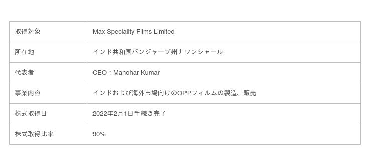 一方、MSFLは、1990年に創業、インド北部パンジャーブ州に本社・製造拠点を置き、食品包装材向けを中心とするOPPフィルムの製造・販売を行っています。