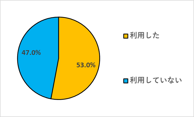 「過去1年間でサービスエリア・パーキングエリアを利用しましたか?」の質問については、「利用した」が53.0%、「利用していない」が47.0%という結果になりました。