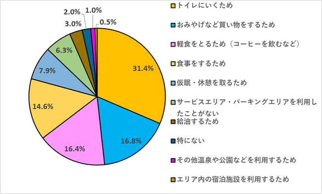サービスエリア・パーキングエリアを利用する用途は、「トイレにいくため」が最多