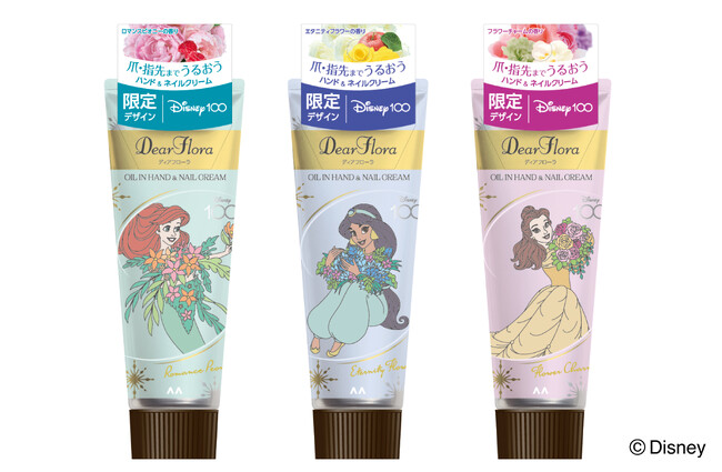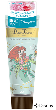 株式会社マンダム(本社:大阪市 社長執行役員:西村健)は、フラワーオイル配合で、うるおいを与えてやわらかな手指に導く「マンダム ディアフローラ オイルイン ハンド&ネイルクリーム」を「ディズニー100」テーマの限定プリンセスデザインで全国のウエルシアグループ、トライアルグループで2023年9月11日(月)より数量限定で発売します。