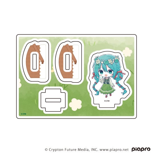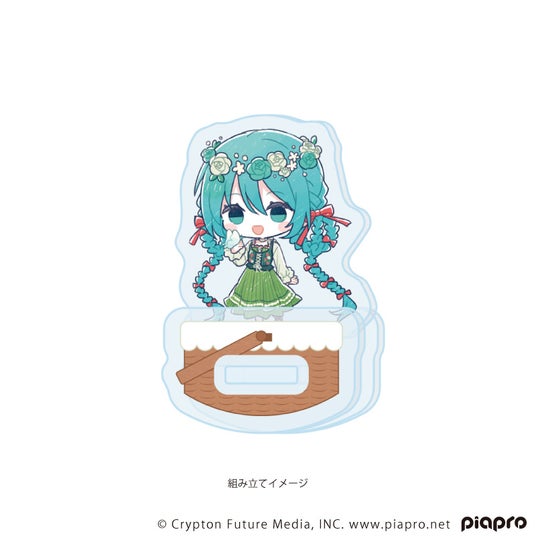 ゆらゆらアクリルスタンドはパーツを組み立てると左右に揺れる、動きのあるアクリルスタンドです。ラックやデスクに飾って、カゴの中に入ってゆらゆら揺れる初音ミクたちに癒されてください!