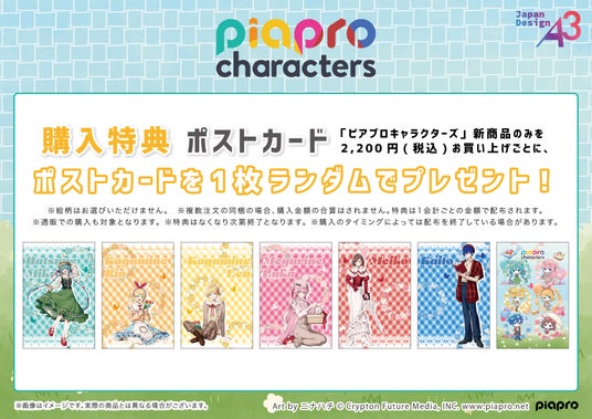 『ピアプロキャラクターズ』新商品のみを2,200円(税込)お買い上げごとに、ポストカード(全7種)をランダムで1枚プレゼント!