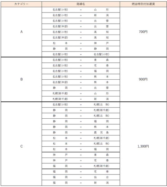 3.各種割引運賃利用の場合にも、この燃油特別付加運賃を適用いたします。