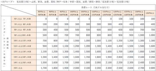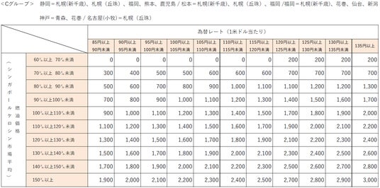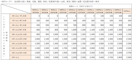 なお、燃油特別付加運賃は、シンガポールケロシン市況価格および為替レートの変動に応じて、