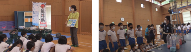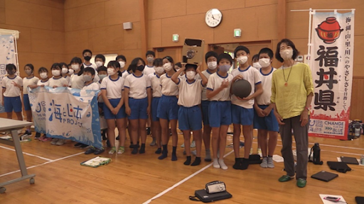 福丼県プロジェクト実行委員会は、7月15日に内外海公民館にて、海近辺の学校と山近辺の学校が互いに勉強の成果を発表し合う『山と海の小学校を結ぶ「体験授業」』を実施しました。このイベントは、日本財団が推進する海洋ごみ対策事業「海と日本プロジェクト・CHANGE FOR THE BLUE」の一環で開催するものです。