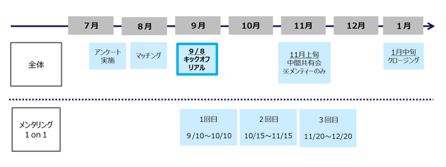 「クロスメンタリング」とは、メンター(支援、助言する人)とメンティー(支援・助言を受ける立場の人)を他企業同士で組み合わせた、企業横断型のキャリア形成支援の取り組みとなります。国内では社内でメンタリング制度を取り入れるケースは多くありますが、企業や業種を超えたメンタリングを導入しているケースは少ないともいわれております(*2)。一方で海外ではこのような取り組みは拡がり、業種が違うからこそ相談できることや、対話によりメンター、メンティーの視野が広がるということが成果としても報告されています(*3)。