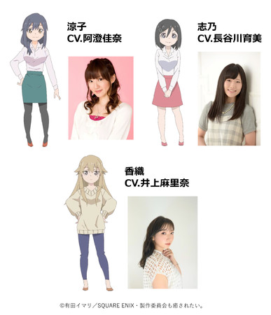 伏原さんの同僚・涼子役を阿澄佳奈、後輩・志乃役を長谷川育美、友人・香織役を井上麻里奈が担当!