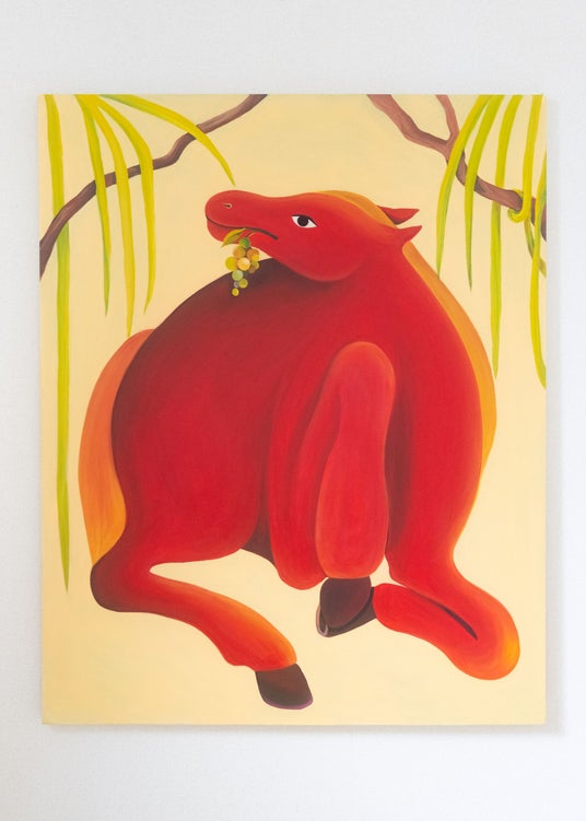 大きい作品を描くときは、大らかな形の馬が真ん中にいて、その周りにはより繊細なもの、植物や小さな生き物などがいる。一つの画面の中に大きいものと小さなものの二つの世界線が存在する。