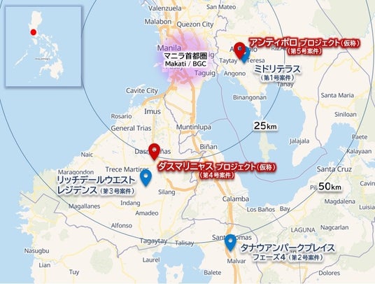 当社では、2022年よりフィリピンでの住宅開発に参入しており、今回の2件を含め計5件の開発を進めております。同国内の人口増加と安定した経済成長を背景とする堅調な不動産市況を追い風に、第1号案件の低層マンションでは全戸完売するなど、既存3案件は順調に実績を伸ばしています。