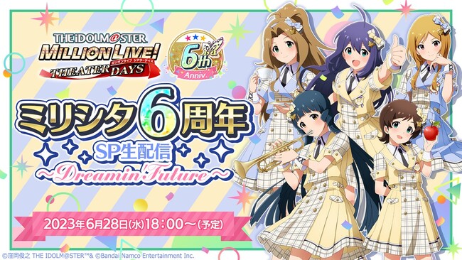 2023年6月28日(水)18:00より、『ミリシタ6周年 SP生配信 ~Dreamin' Future~』を配信予定です!