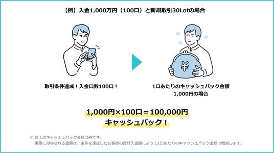 10万円以上のご入金※¹と30Lot以上の新規取引※²をされたお客様を対象に、
