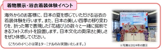 成田空港では、海外から日本を訪れるお客様に、日本の文化に触れて「また訪れたい」という思いを抱いていただくため、“日本ならでは”を体験いただけるイベントでおもてなしをしております。