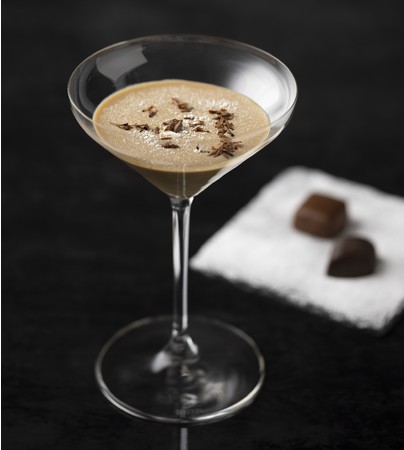 バレンタインデーをイメージしたカクテルは、相手のハートに火をつけるかのようにアルコール度数の高いブランデーをベースに、チョコレートリキュールや目の前で削ったチョコレートを加えた一杯。添えられたチョコレートとのマリアージュをお楽しみください。