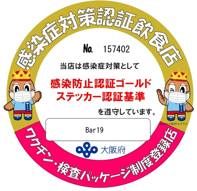 ※大阪府が発行する「感染防止認証ゴールドステッカー」認証店です。