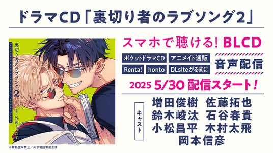 株式会社リブレ(本社:東京都新宿区、代表取締役社長:是枝由美子)は、ドラマCD「裏切り者のラブソング2」を2025年5月30日に発売致します。https://www.b-boy.jp/special/uralove/cd/