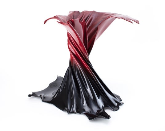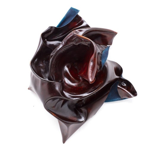 隗楠(ウェイナン)は1994年中国北京市生まれ、京都府在住。皮革を素材とした漆芸作品を手掛けています。2015年、佐賀大学への留学時に漆オブジェと呼ばれる漆造形作品と出会い、深く惹かれたことをきっかけに、その造形感覚や塗りによる仕上げの手法を自身の作品にも取り入れるようになりました。作品は、革を引っ張ったり、皺を付けたりする制作過程の中で出会う偶発的な美しい曲面を漆で留めることにより、豊かな形を生み出しています。また、作品の色は漆を代表する、艶があり奥深い黒とパワフルな赤を基調としています。生命力のある動物の皮革素材のテクスチャーを作品に採り入れることで、造形の独自性や、漆芸の新たな可能性を引き出しています。