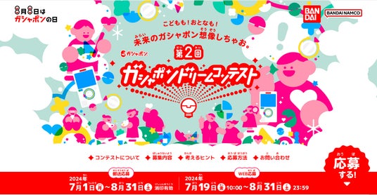 株式会社バンダイが開催している「第2回 ドリームコンテスト」は、子どもも大人も参加できるアイデアコンテストです。「未来のガシャポン(R)」をテーマに、自由な発想のアイデアを募集。親子で一緒に楽しく取り組めるコンテストです。応募締切は、8月31日(土)まで。