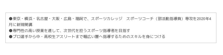ヒューマンホールディングス株式会社の事業子会社で、教育事業を運営するヒューマンアカデミー株式会社(本社:東京都新宿区、代表取締役:川上 輝之、以下「当社」)の全日制専門校・総合学園ヒューマンアカデミーは、2020年4月より「スポーツカレッジ スポーツコーチ(部活動指導員)専攻」を、東京・横浜・名古屋・大阪・広島・福岡の6校舎にて新規開講します。