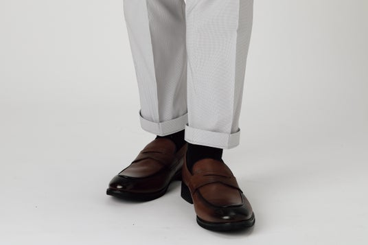 裾の内側に芯を貼ることで約10cmまで丈調整が可能。補正なしでご購入後すぐにお好みの長さでご着用いただけます。内側折りは「シングル仕上げ」になり、外側折りはカジュアルな「ダブル仕上げ」でお召しいただけます。