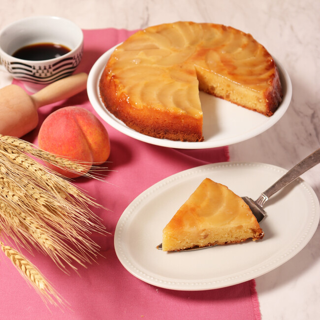 山形県産の白桃を敷き詰めて焼き上げたガトー・ナンテ。冷やしても美味しくお召し上がりいただけます。