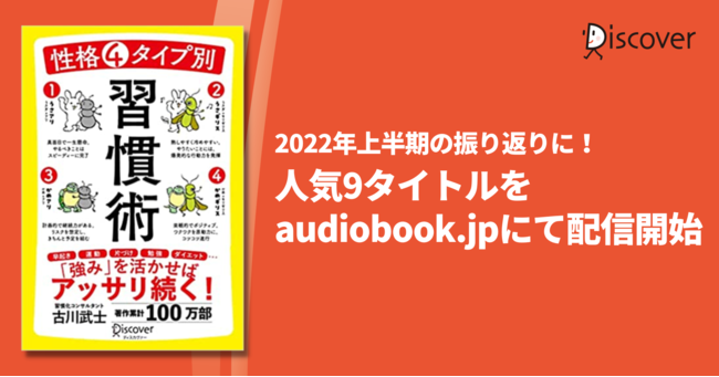 株式会社ディスカヴァー・トゥエンティワン(本社:東京都千代田区、取締役社長:谷口奈緒美)は2022年6月に、『性格4タイプ別 習慣術』他8点のオーディオブックをaudiobook.jpで配信開始しました。