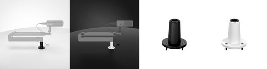 「Desk Plate for Wave Mic Arms」は、全てのElgato製マイクアームをデスクやテーブルの好きな場所にネジで簡単に固定できるマイクアクセサリーです。付属の3本のネジを使用して固定するだけなので、クランプを設置することも天板を切り抜く必要もありません。重いマイクアームをしっかりと支える堅牢なデザインに加え、デスクやテーブルとほぼ水平に設置できるので、コンパクトですっきりとした外観を実現しています。また、支え部分を取り外せば、1/4インチマウントを使用してアクセサリーやアダプターを簡単に取り付けることが可能です。