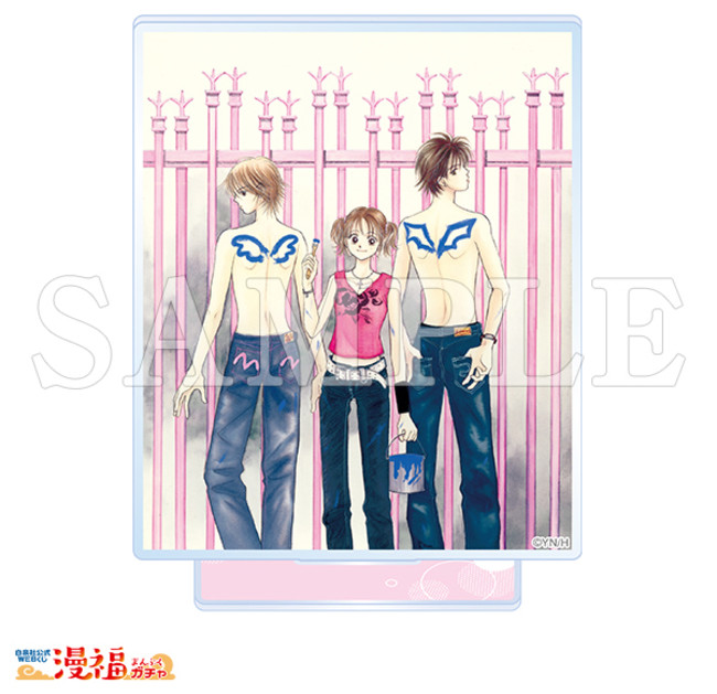 『カラフルBOX』『隣のDOUBLE』『ビーナスは片想い』『ZIG☆ZAG』『純愛ラビリンス』『xxxな関係』美麗カラーイラストがアートアクリルスタンドに。集めて並べてミニ原画展気分を楽しめる。(サイズ 約85×70mm)