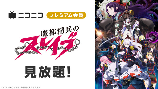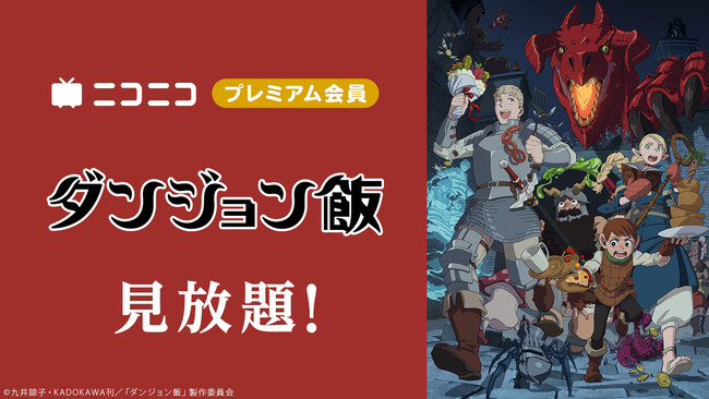ニコニコでは、「ダンジョン飯」「魔都精兵のスレイブ」「魔法少女にあこがれて」など新作アニメ18作品を含めた、計59作品のニコニコプレミアム会員見放題を行います。