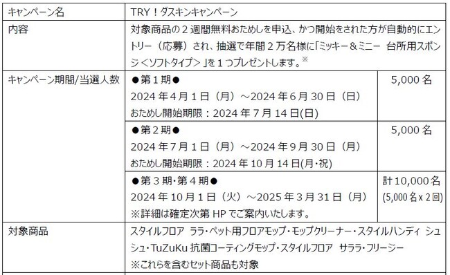 キャンペーンサイト:https://www.duskin.jp/item/mop/disneycampaign/ ※4月1日から※