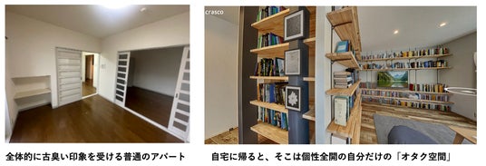 「推し活」や「読書の時間」、「フィギアを眺めながら、アニメを存分に楽しむ」など自分の好きなものに囲まれて、自分の世界を築き上げたいと願う人にとって、このリノベーション空間は理想的な住まいです。