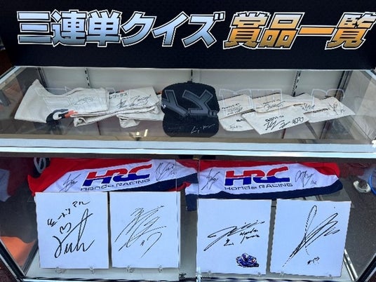 MotoGP(TM)クラス決勝順位を予想する3連単クイズや、解説者などの直筆サイン、オリジナルグッズが当たるガラポン抽選会も開催!(1人1日1回参加可能)