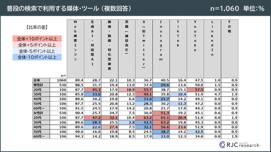 若年層はSNS・生成AIを “検索” に活用、女性ではInstagramが顕著
