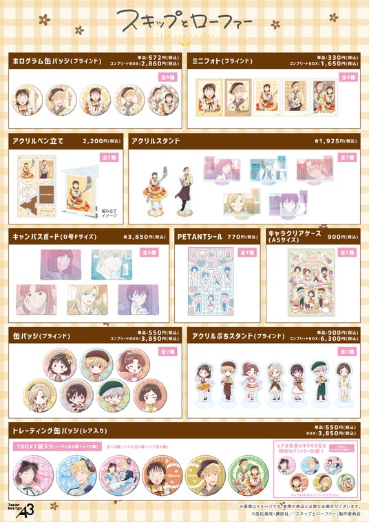 3つのイラストを使って、内容盛りだくさんで登場したTVアニメ『スキップとローファー』の新作グッズ。