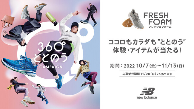 ココロもカラダも“ととのう”体験・アイテムが当たる!「FRESH FOAM 360°ととのうキャンペーン」を10月7日(金)~11月13日(日)の期間で実施します。キャンペーン期間中に対象店舗にてFresh Foamシリーズ商品、またはQ Speedシリーズ商品を合計5,000円(税込)以上ご購入いただいたお客様に、ココロもカラダも“ととのう”豪華景品を抽選でプレゼントいたします。