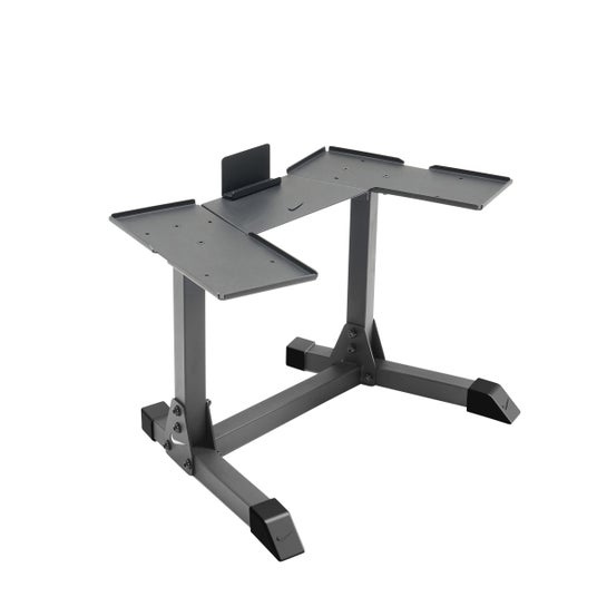 Nike Adjustable Dumbbellsを2つセットできる専用スタンド。パウダーコート仕上げのスチールを採用しており、高い耐久性と安定性を誇るスタンドになっています。床から適切な高さに設置できることで、スムーズにトレーニングを開始することができます。