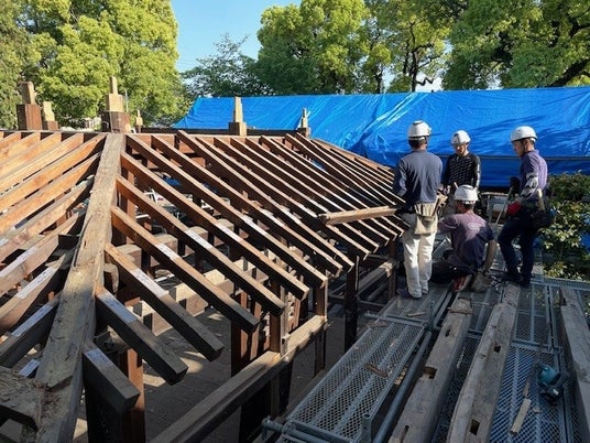 同神社は、この歴史的建造物を地域の誇りとして後世に継承するため、令和7年3月から「令和の大改修」と称し、平成30年の大阪府北部地震や台風21号で破損した屋根や柱部分を修復し、木組みや彫刻装飾を補修する改修工事を進めてきました。4月18日(土曜日)に約1年間に渡った工事が終了。令和8年5月8日(金曜日)には、落成記念として本殿や拝殿の内部が特別公開されます。拝殿内では、高槻城の雄姿を描いた絵馬(高槻市指定文化財)や、今回の工事の際に新たに見つかり、補修された大名行列を描いた絵馬が公開されます。また、特別公開にあわせ、落成を記念した奉納演奏会も催される予定です。