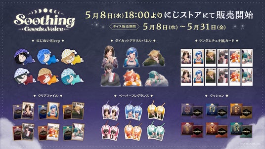 ANYCOLOR株式会社(本社:東京都港区 代表取締役:田角陸、以下「当社」)が運営するVTuber/バーチャルライバーグループ「にじさんじ」は、2024年5月8日(水)18時からにじさんじオフィシャルストアにて、「にじさんじ Soothing Goods&Voice」の販売を開始いたします。