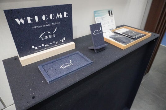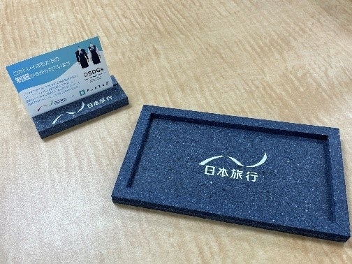 日本旅行では、役目を終えた制服を新たな素材「PANECO(R)」に再資源化し、コースターやウェルカムボード、キャッシュトレイなどの製品として再び営業活動で活用していきます。