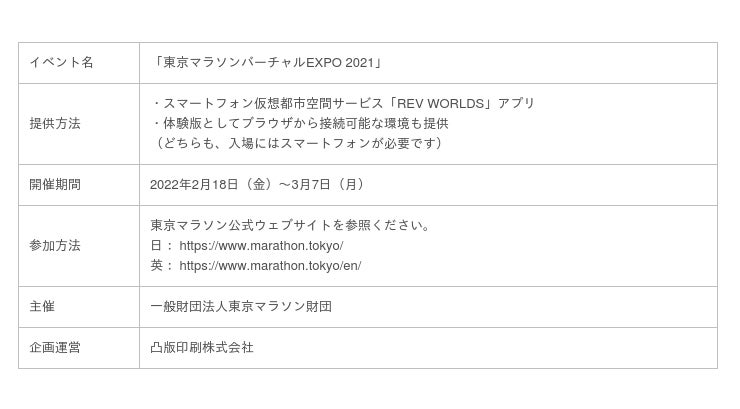 ■ 「東京マラソンバーチャルEXPO 2021」開催概要