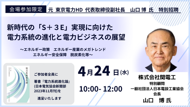 JPI(日本計画研究所)は、株式会社関電工 特別顧問(元 東京電力HD 代表取締役副社長) 山口 博 氏を招聘し、電力系統の進化と電力ビジネスの展望について詳説いただくセミナーを開催します。