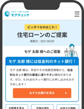 必要情報を入力すると、「金利順」「保険充実順」など自分が重視するポイントごとに整理された住宅ローンランキングや、お客様の属性や希望条件から最適な住宅ローンをモゲチェックが提案する「モゲレコ」を提供しています。