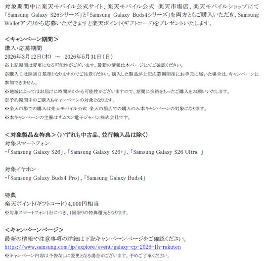 ■Samsung Galaxy S26シリーズ発売記念 購入キャンペーン