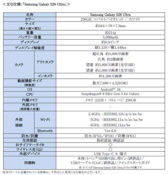 ■Samsung Galaxy S26シリーズ発売記念 予約キャンペーン