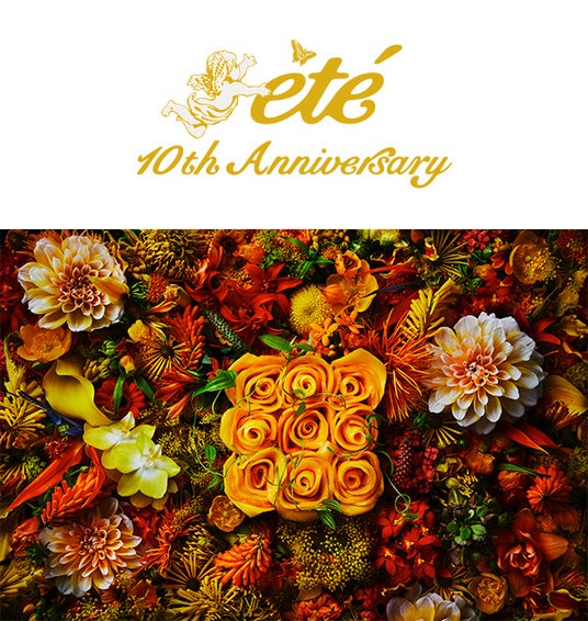 10周年の節目の年のセレブレーションの展覧会で、庄司氏はかねてより交流のあったフラワーアーチスト東信氏とのコラボレーションを企画。アートとしての食を追求する庄司氏に、東京の南⻘山にオートクチュールの花屋「JARDINS des FLEURS」を構えつつ、アートとしての花を追求し続ける東氏が共鳴し、フルーツが宝石のように輝くケーキ達と妖しい美しさを放つ花達の競演が実現しました。