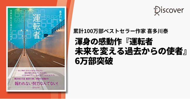株式会社ディスカヴァー・トゥエンティワン(本社:東京都千代田区、取締役社長:谷口奈緒美)は2019年3月28日刊行の『運転者 未来を変える過去からの使者』(喜多川泰・著)を増刷し、6万部を突破しました。