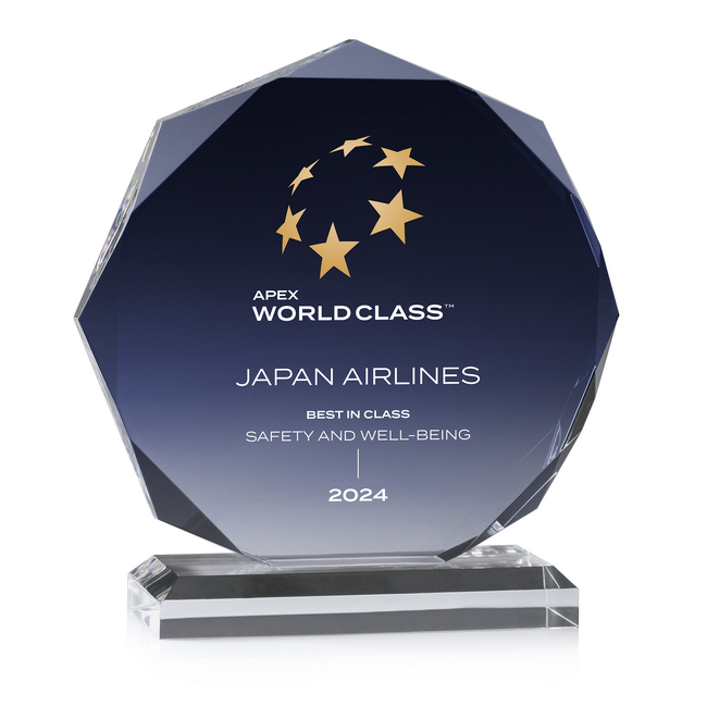 APEX「WORLD CLASS」は、社会の価値観が変化するポストコロナ時代におけるエアラインの評価指標として2021年に新設された賞で、専門家による搭乗監査とお客さまからの評価をもとに、世界最高水準のエアラインが認定されます。「サステナビリティ」、「安全・安心とウェルビーイング」、「サービス品質」の3つの評価軸により審査される点が特徴で、お客さまの航空利用体験が単なる移動ではなく、安全・安心、健康かつ持続可能で、価値あるものとなるかが大きな評価ポイントです。「WORLD CLASS」は今回で3年連続の受賞となり、高いサービス品質に加え、持続可能な社会の実現に向けた取り組みや、安全・安心への継続した取り組みが評価されました。