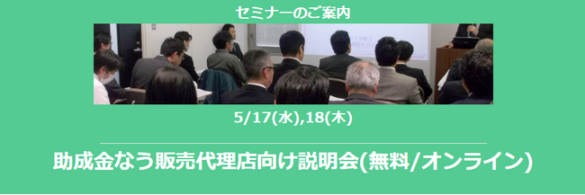 5/17(水),18(木)「助成金なう販売代理店説明会」を開催します。