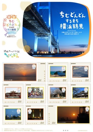 「ちむどんどん」横浜鶴見プロジェクト公式ロゴマークデザインの消印をドラマ放送開始日である4月11日限定で使用します。また、公式ロゴマーク及び鶴見・沖縄の風景写真を使用したオリジナルフレーム切手セットを4月25日から1,840円(税込)で発売します。主に鶴見区内の郵便局でお買い求めいただけます。